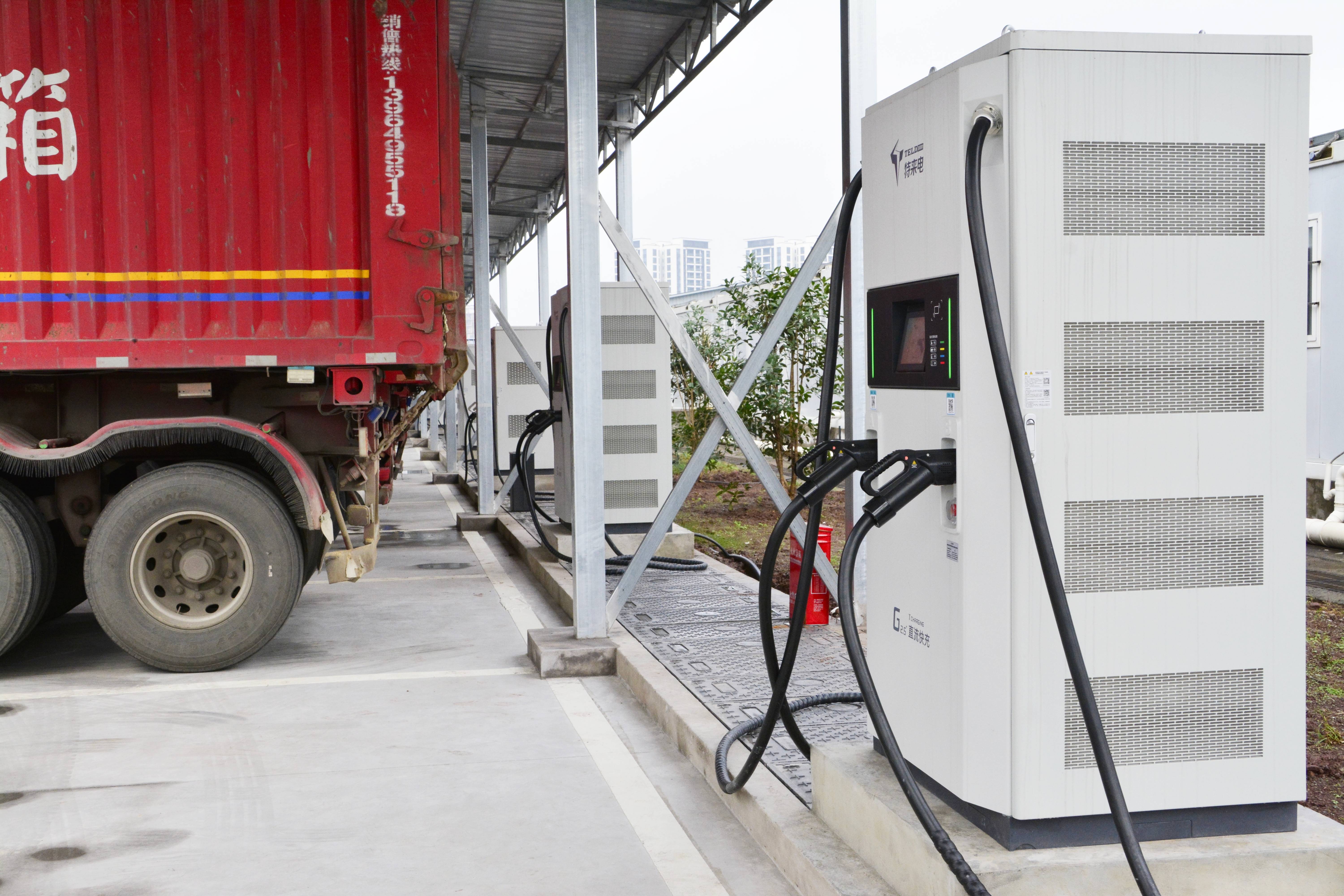 龙驰重卡充电站项目位于石洞街道郎酒大道,占地面积约7亩。充电站新建2台2000KVA变压器,4台400KW充电桩,6台320KW充电桩,最多可以同时为20台新能源重卡提供充电服务,单桩最大输出功率达400KW。